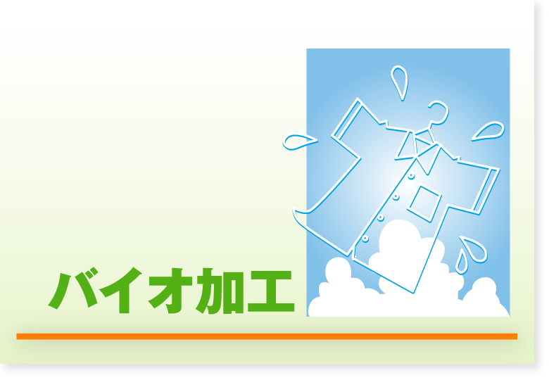 こちらは別名”汗抜き加工”ともいい、商品の水溶性の汚れをどう落とすかということを主のテーマとしての洗浄工程です。 通常ウールの素材が含まれているものは水洗いをすることができません。しかし夏の暑い時期や、自肌に触れるような商品は必ず人間の皮脂・汗がついてしまうものです。 ドライクリーニングをしますと油汚れは良くとれ、殺菌効果もあり、さらに商品の風合い・型崩れで問題となることはありませんが、その代り水溶性の汚れをとることはできないのです。 そこで商品の風合い・型崩れ・色落ちの問題を起こすことなく水洗いと限りなく近い効果を求めたものがこのバイオ加工というとても優れた洗浄工程です。 ご家庭では漬け置き洗いということをされる思いますが、それをさらに発展させたものとお考えいただければよりイメージできるのではないでしょうか。 しかし通常の夏物スーツなどは問題ありませんが、実際に水に漬けますので商品によってはかなり危険な作業であり全ての商品ができる加工ではありません。